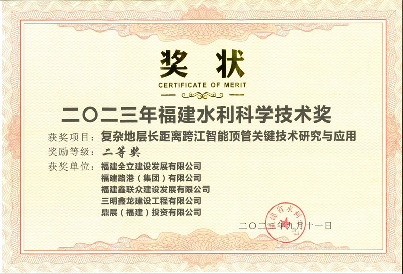 2023年九月十一日榮獲福建水利科學(xué)技術(shù)獎(jiǎng)