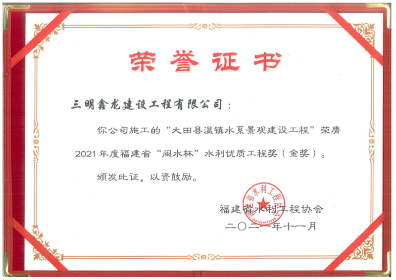 熱烈慶祝我司榮獲2021年度福建省“閩水杯”水利優(yōu)質(zhì)工程獎(jiǎng)(金獎(jiǎng))